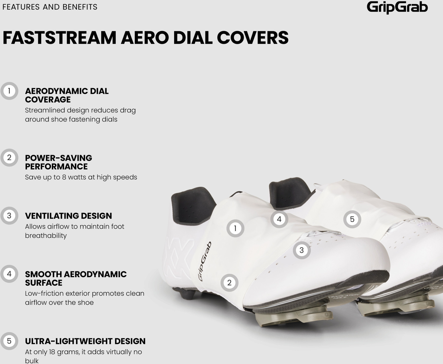 Die GripGrab FastStream Aero Schuhverschluss Überzüge sind für Highspeed-Rennrad- und Gravelrides mit Rennradschuhen entwickelt und nehmen sich einen der aerodynamisch wichtigsten Bereiche moderner Radschuhe vor. Indem sie den Luftstrom über hervorstehende Drehverschlüsse glätten, reduzieren sie aerodynamische Turbulenzen – bei minimalem Zusatzgewicht. In kontrollierten Aerotests zeigten die Überzüge messbare aerodynamische Einsparungen von bis zu 8 Watt bei 45 km/h.