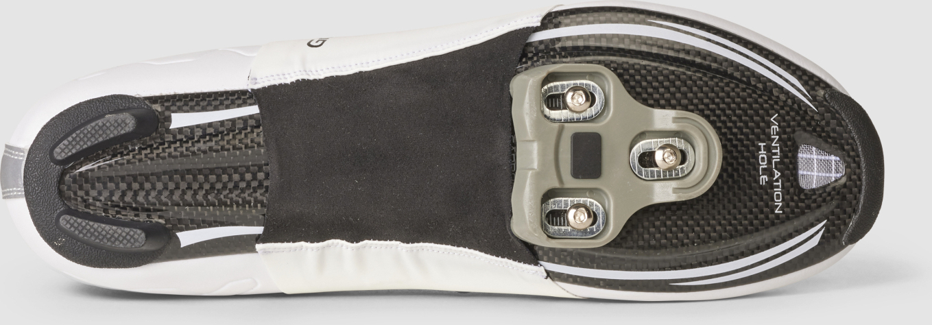 Ein PU-beschichtetes Stretchmaterial konzentriert die Abdeckung auf den Bereich der Verschlussdrehknöpfe und schafft eine durchgehende Oberfläche genau dort, wo der Luftstrom typischerweise am stärksten gestört wird. Die eng anliegende Slip-on-Konstruktion liefert ein schlankes Profil und lässt gleichzeitig Luft an die nicht abgedeckten Bereiche des Schuhs.